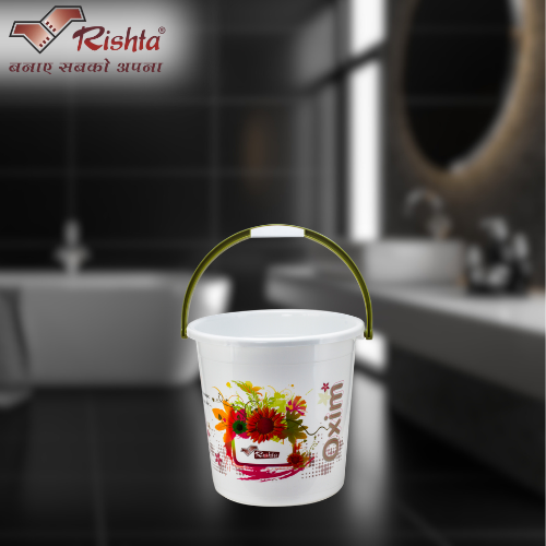 Crafted from high-quality virgin plastic, the bucket offers excellent strength, long-lasting performance, and an attractive floral design that adds a modern touch to your home essentials.