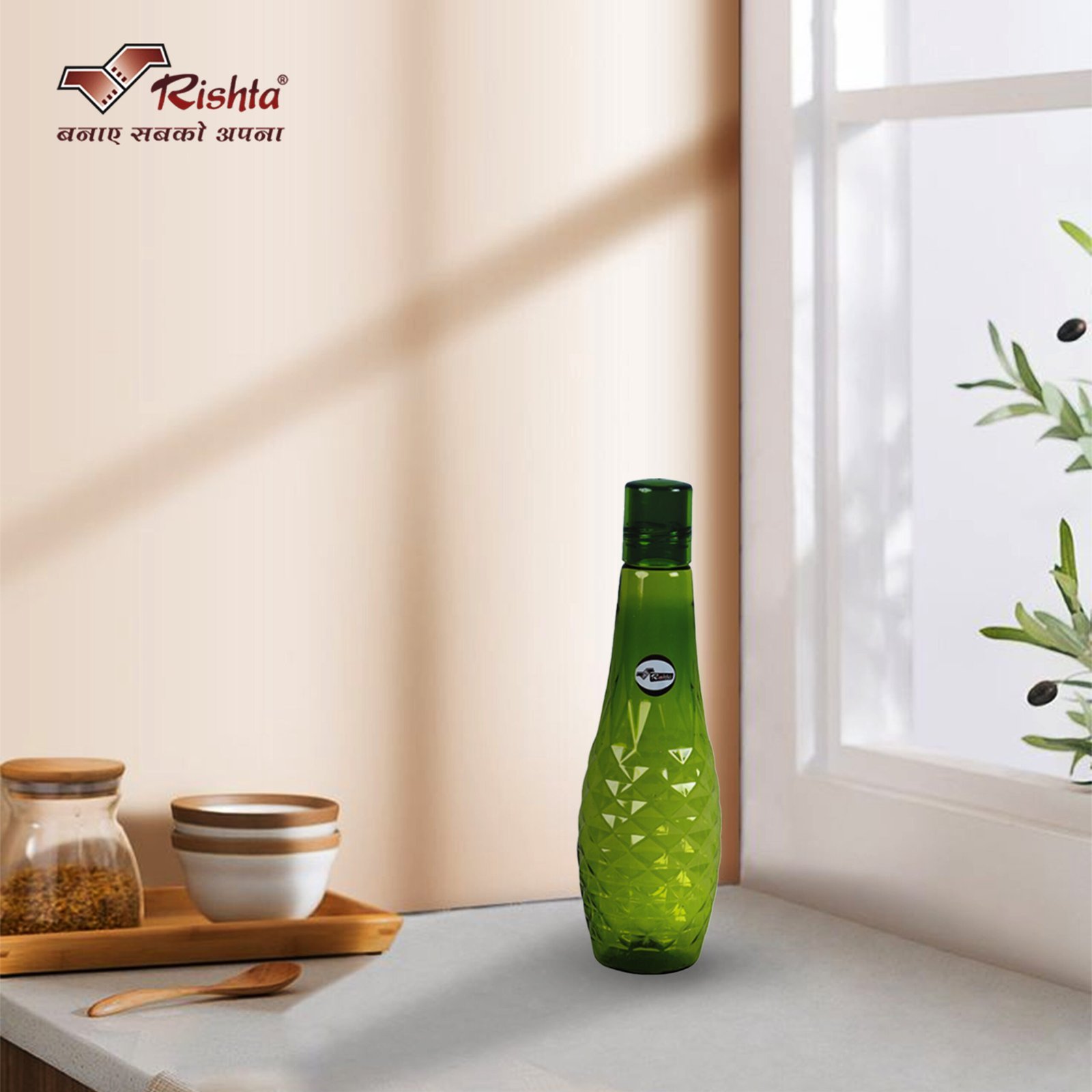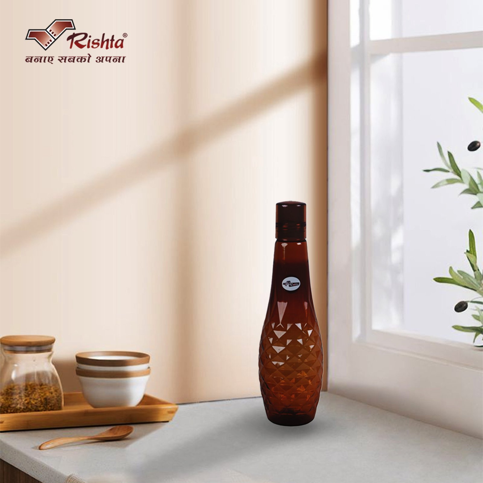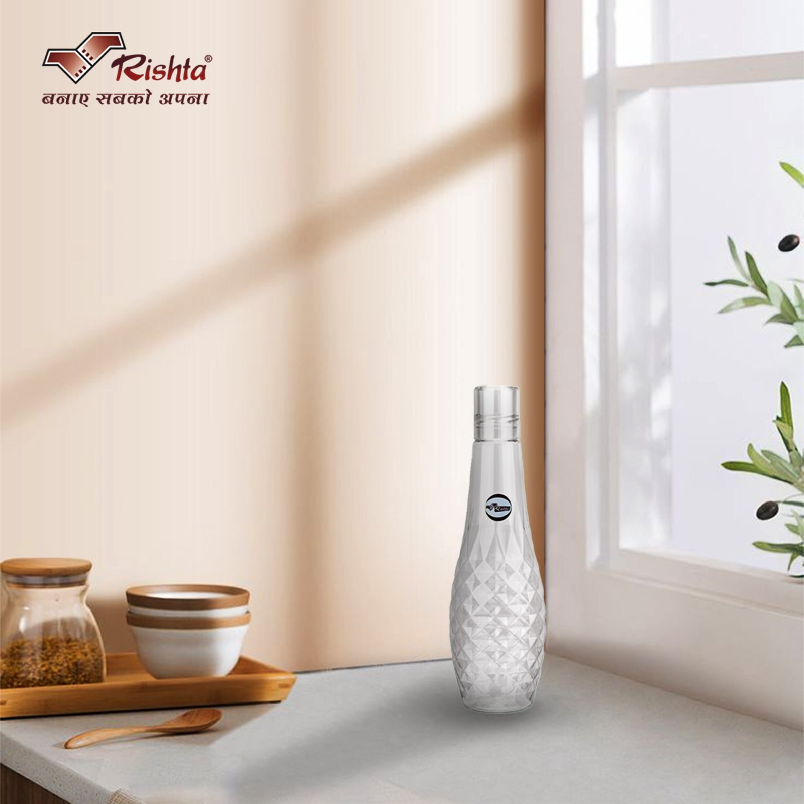 Bring home the perfect combination of style, durability, and convenience with the Rishta Diamond Pattern Plastic Water Bottle. Designed with a unique diamond-cut pattern, these bottles not only look elegant but also provide a strong grip for daily use.